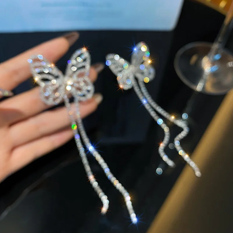 أقراط طويلة مرصعة بحجر الراين للنساء أقراط مرصعة بالكريستال على شكل فراشة كبيرة الحجم فاخرة مجوهرات حفلات الزفاف