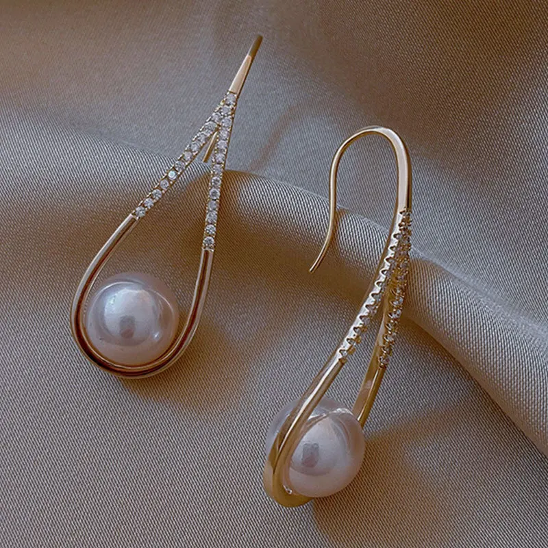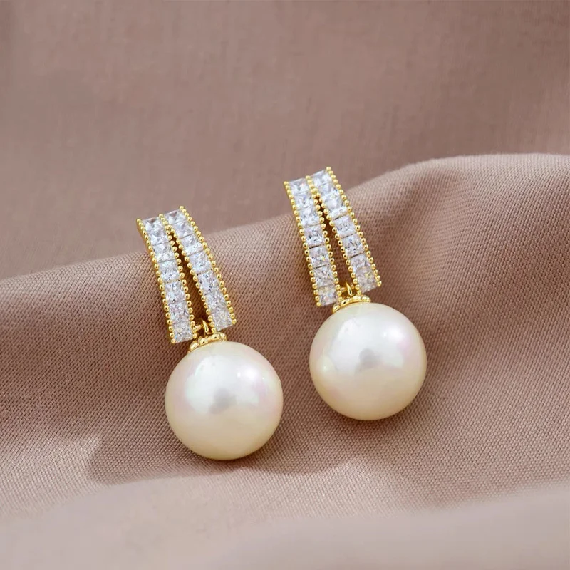 أقراط لؤلؤ كورية مقلدة للنساء ، قرط كريستال زركون هندسي رائع ، هدية مجوهرات لحفلات الزفاف ، موضة جديدةأقراط لؤلؤ كورية مقلدة للنساء ، قرط كريستال زركون هندسي رائع ، هدية مجوهرات لحفلات الزفاف ، موضة جديدة