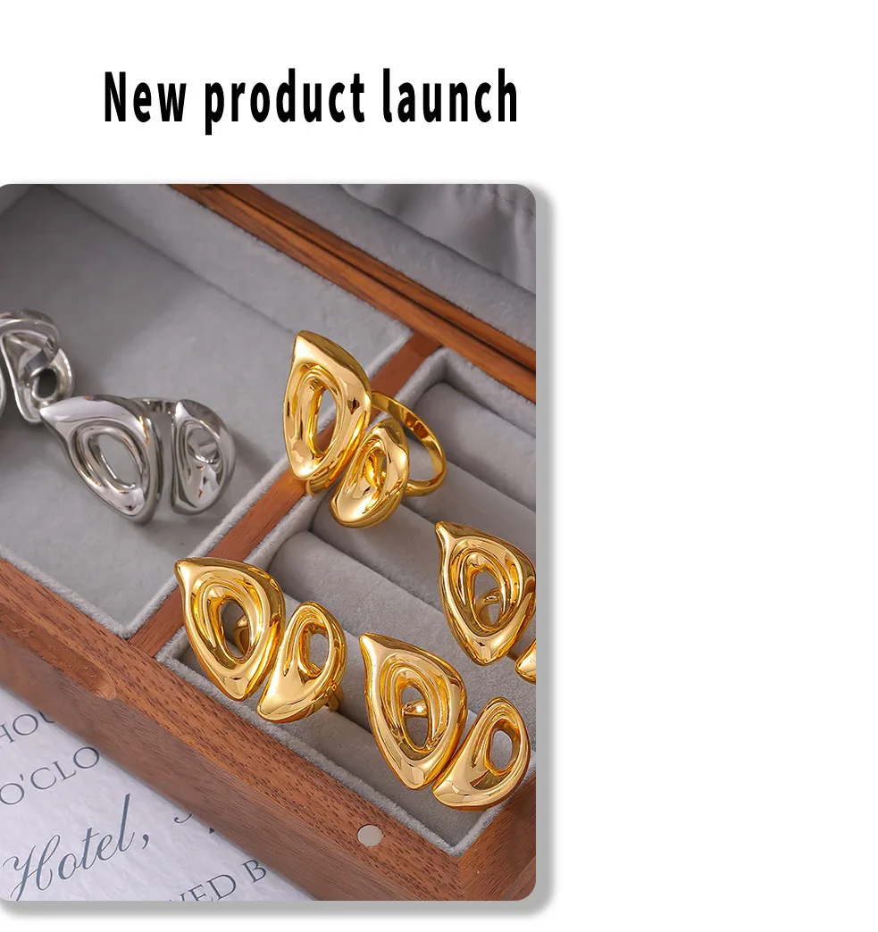 خاتم نسائي أنيق من الفولاذ المقاوم للصدأ مقاوم للماء مطلي بالذهب مجوف مصمم خواتم الاصبع مجوهرات فاخرة هدية بالجملةخاتم نسائي أنيق من الفولاذ المقاوم للصدأ مقاوم للماء مطلي بالذهب مجوف مصمم خواتم الاصبع مجوهرات فاخرة هدية بالجملة