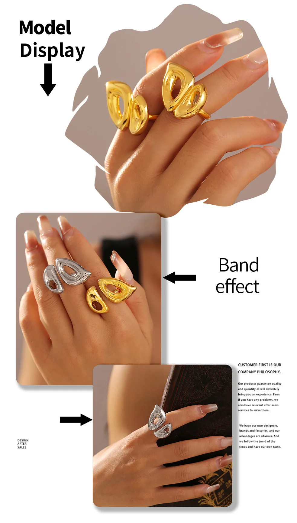 خاتم نسائي أنيق من الفولاذ المقاوم للصدأ مقاوم للماء مطلي بالذهب مجوف مصمم خواتم الاصبع مجوهرات فاخرة هدية بالجملة