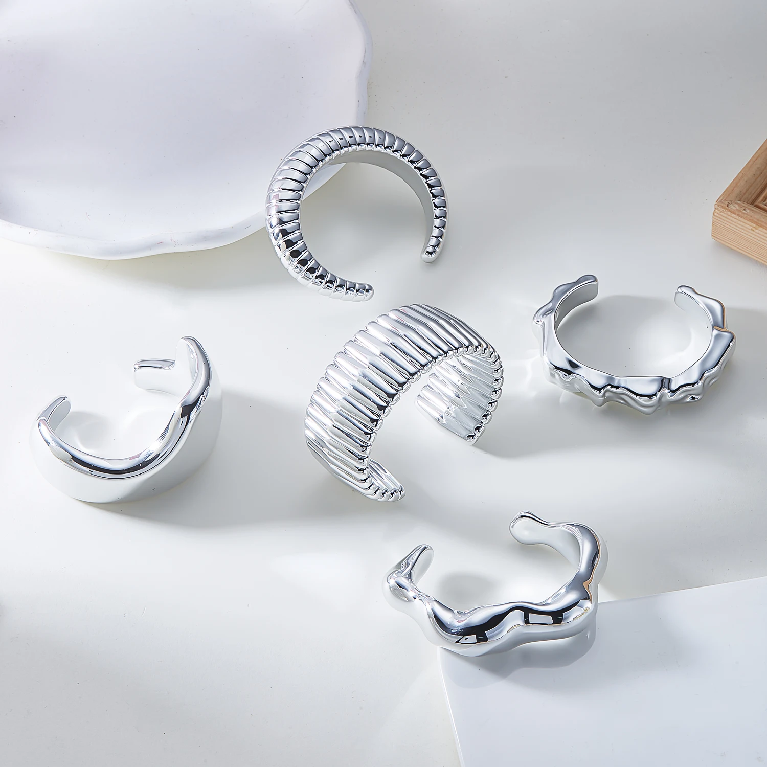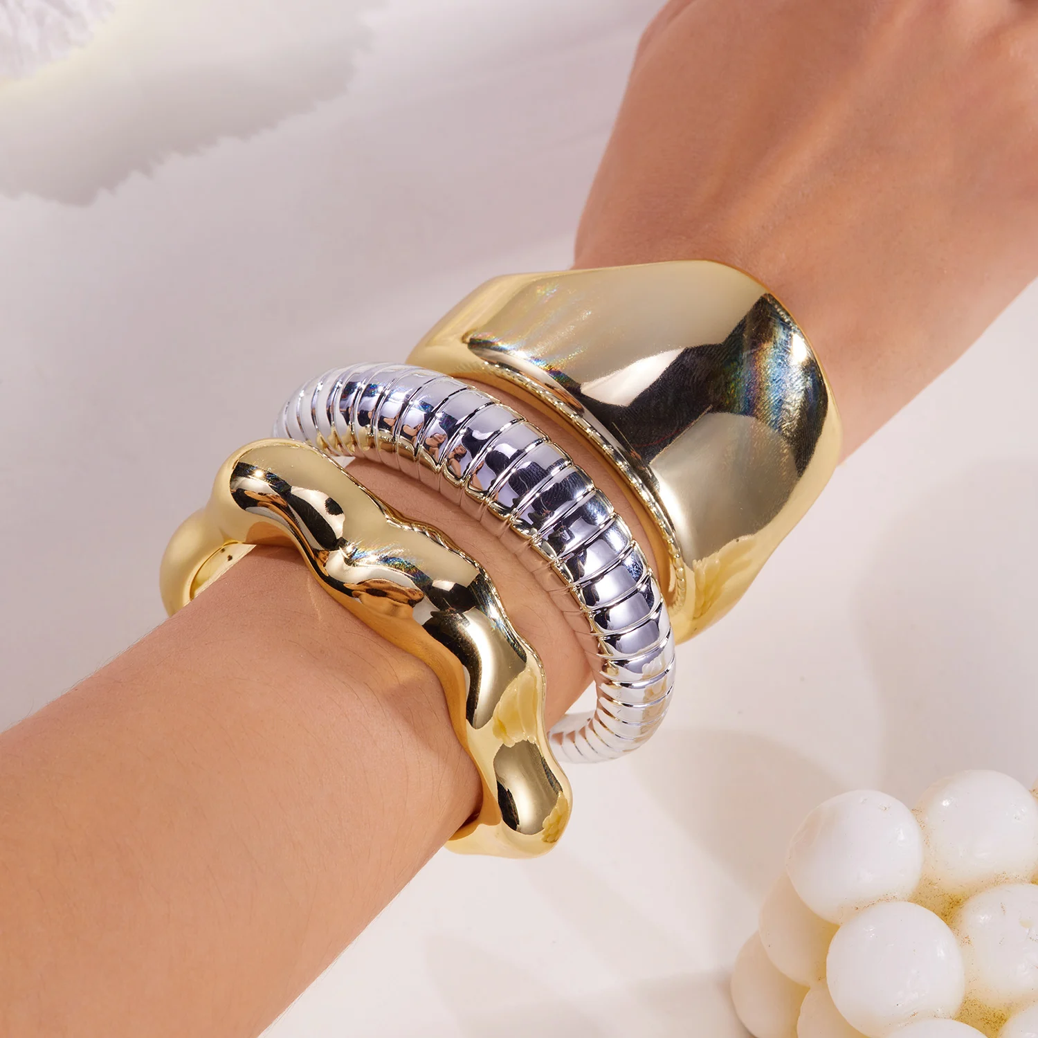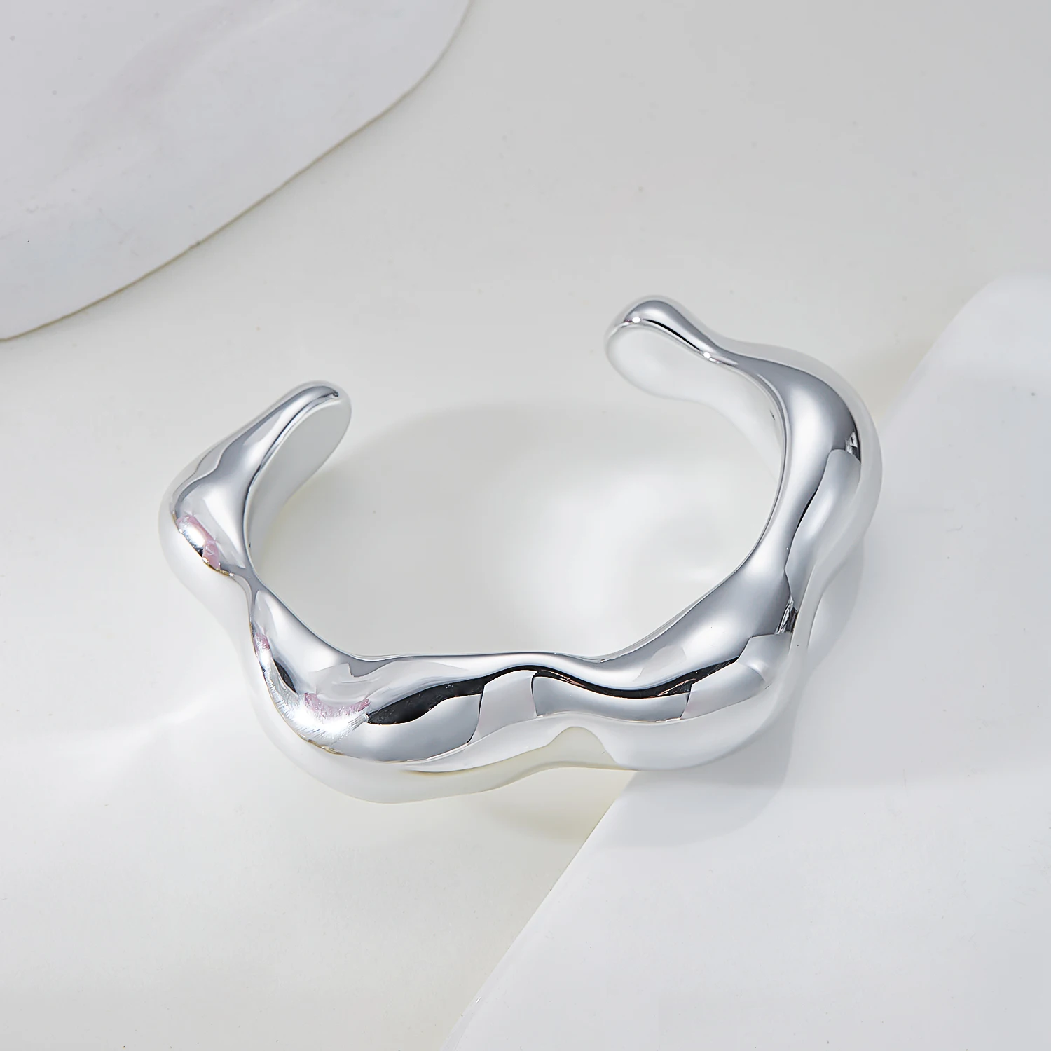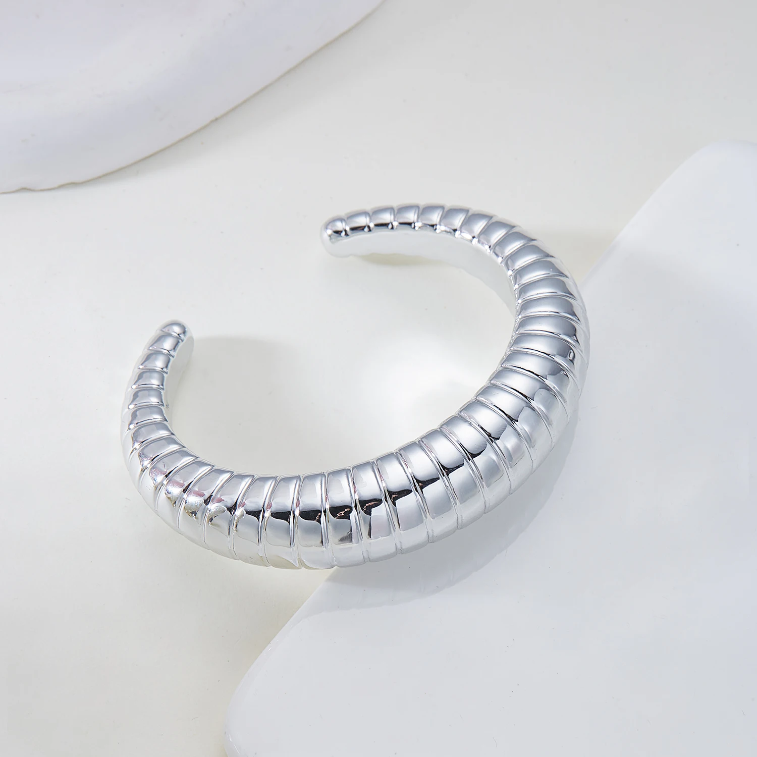 خمر السلس غير النظامية تويست واسعة سوار للنساء الرجال الرجعية الشرير سميكة المعادن البولندية المفتوحة الكفة أساور الرجال اليد مجوهرات هدية