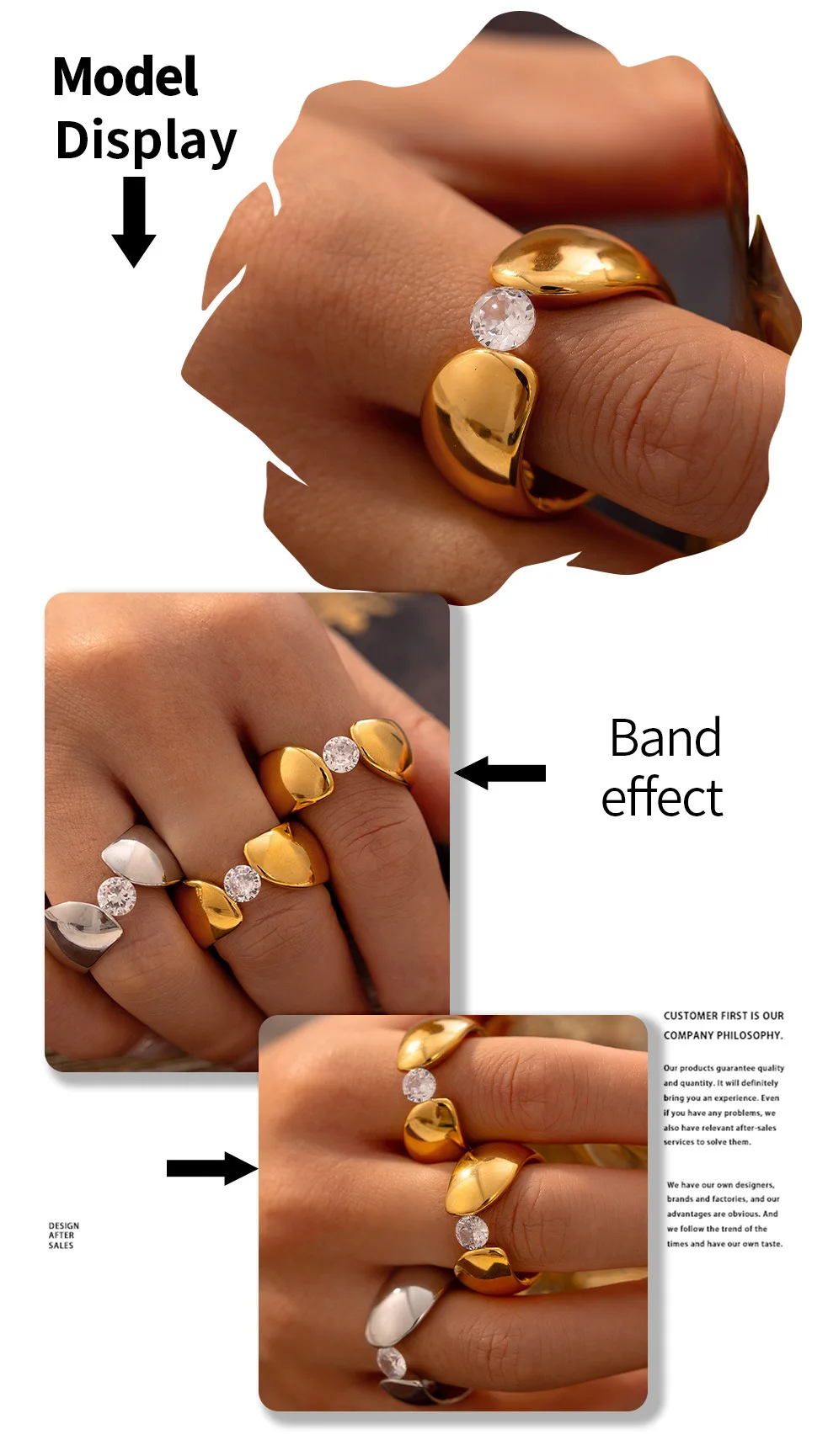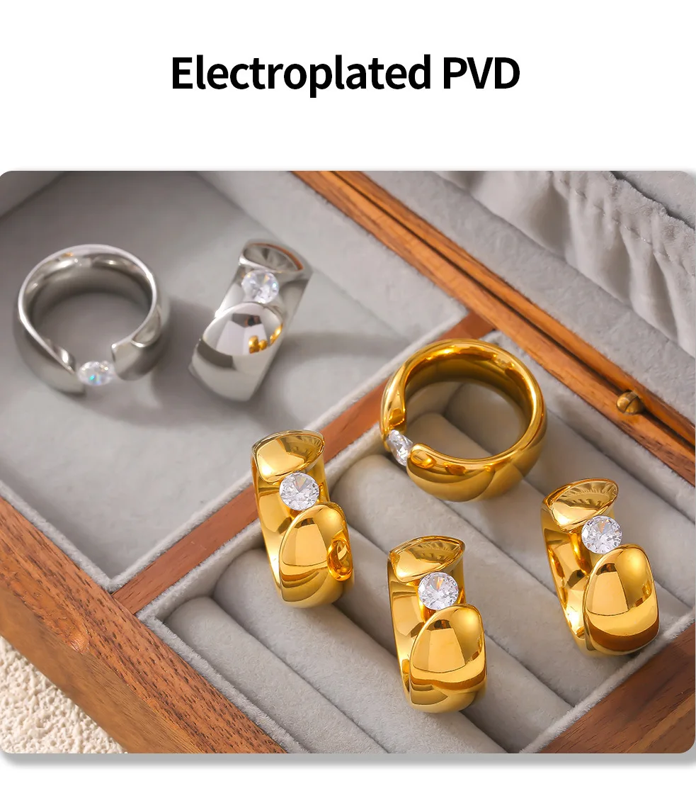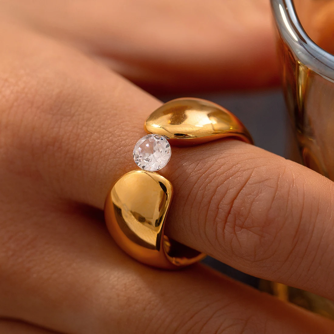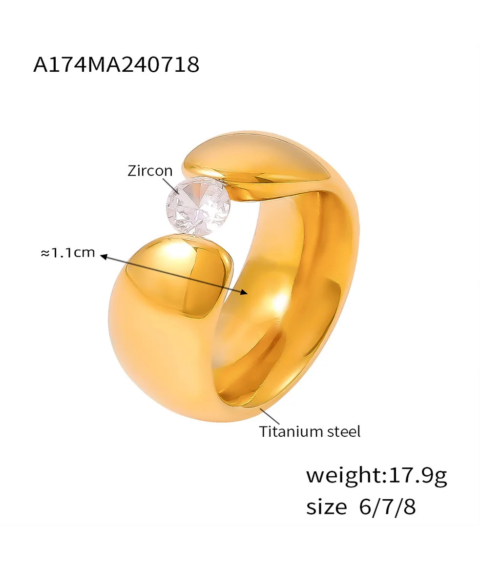 خواتم من الفولاذ المقاوم للصدأ للنساء بتصميم متوسط من الزركون الخيالي ، مطلية بالذهب ، لامعة ، خاتم إصبع مقاوم للماء ، مجوهرات يومية ، هدية ولائم