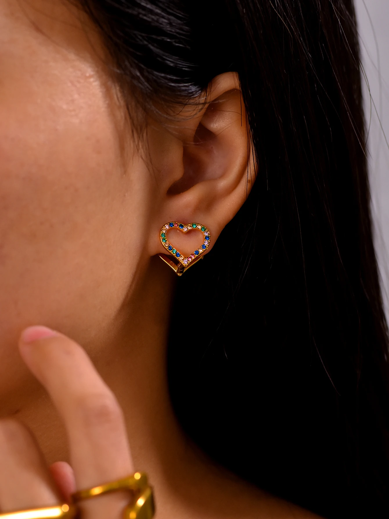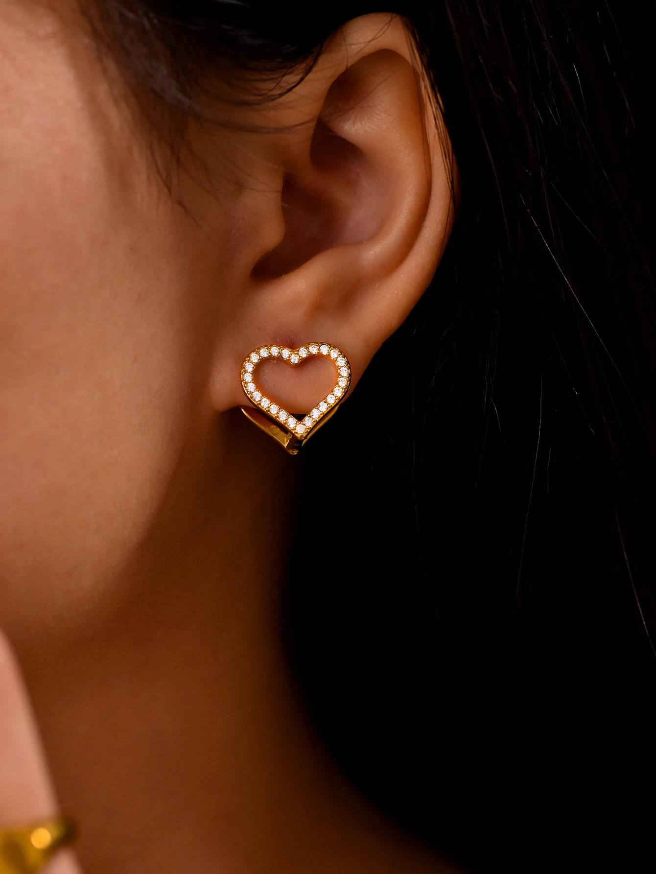 رائعة القلب الزركون أقراط للنساء مقاوم للماء الفولاذ المقاوم للصدأ مطلية بالذهب الحب الأذن مربط سحر مجوهرات نسائية هدية