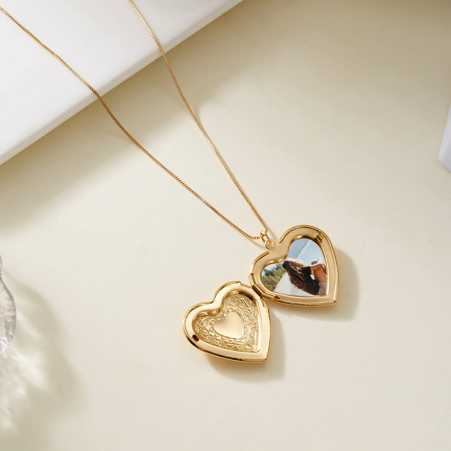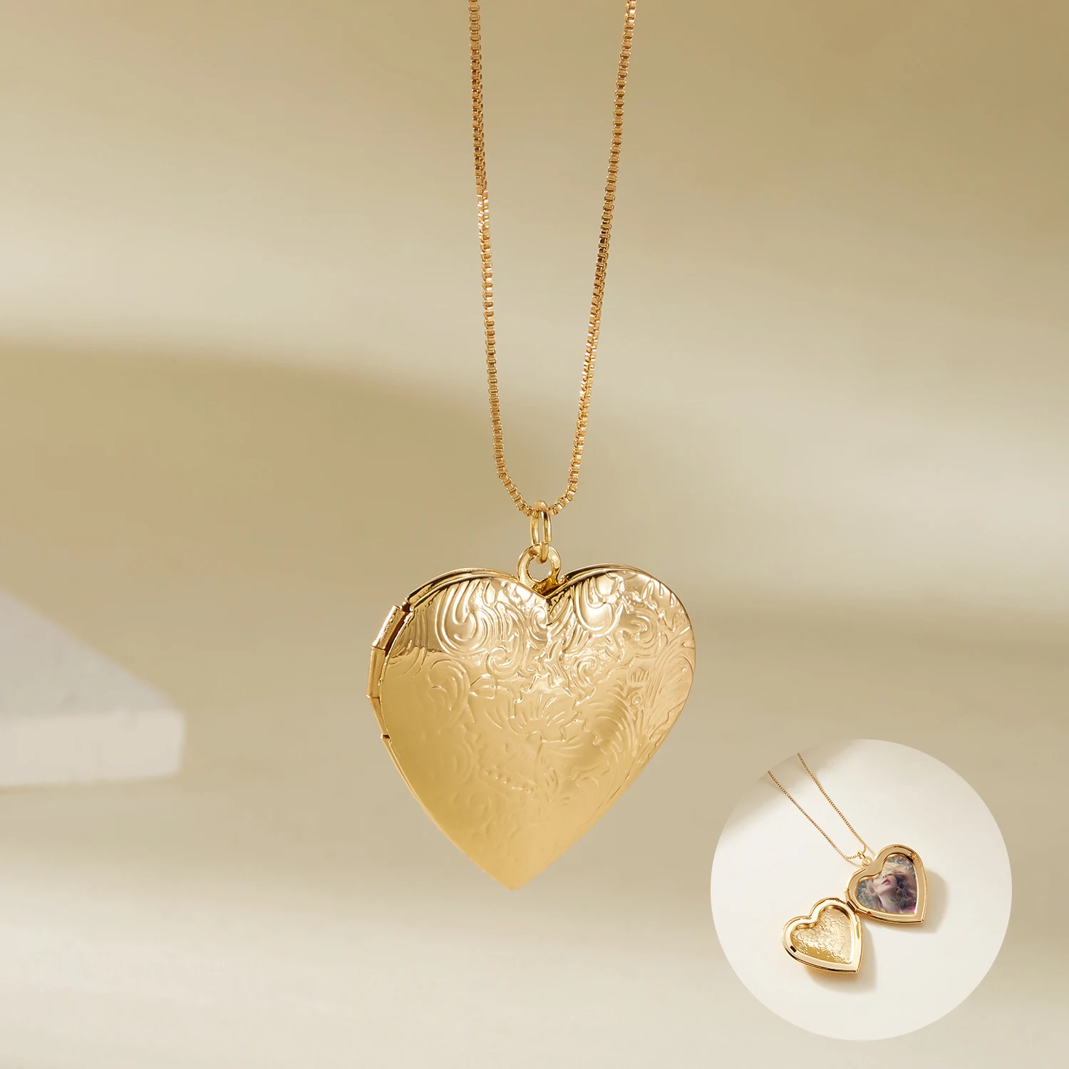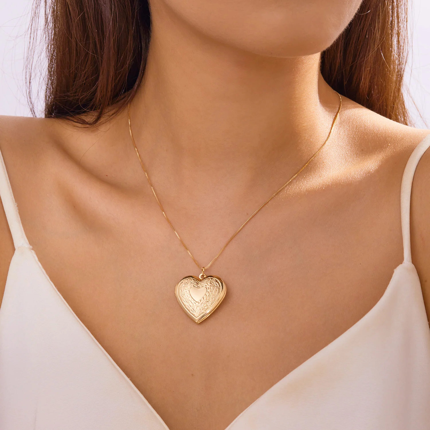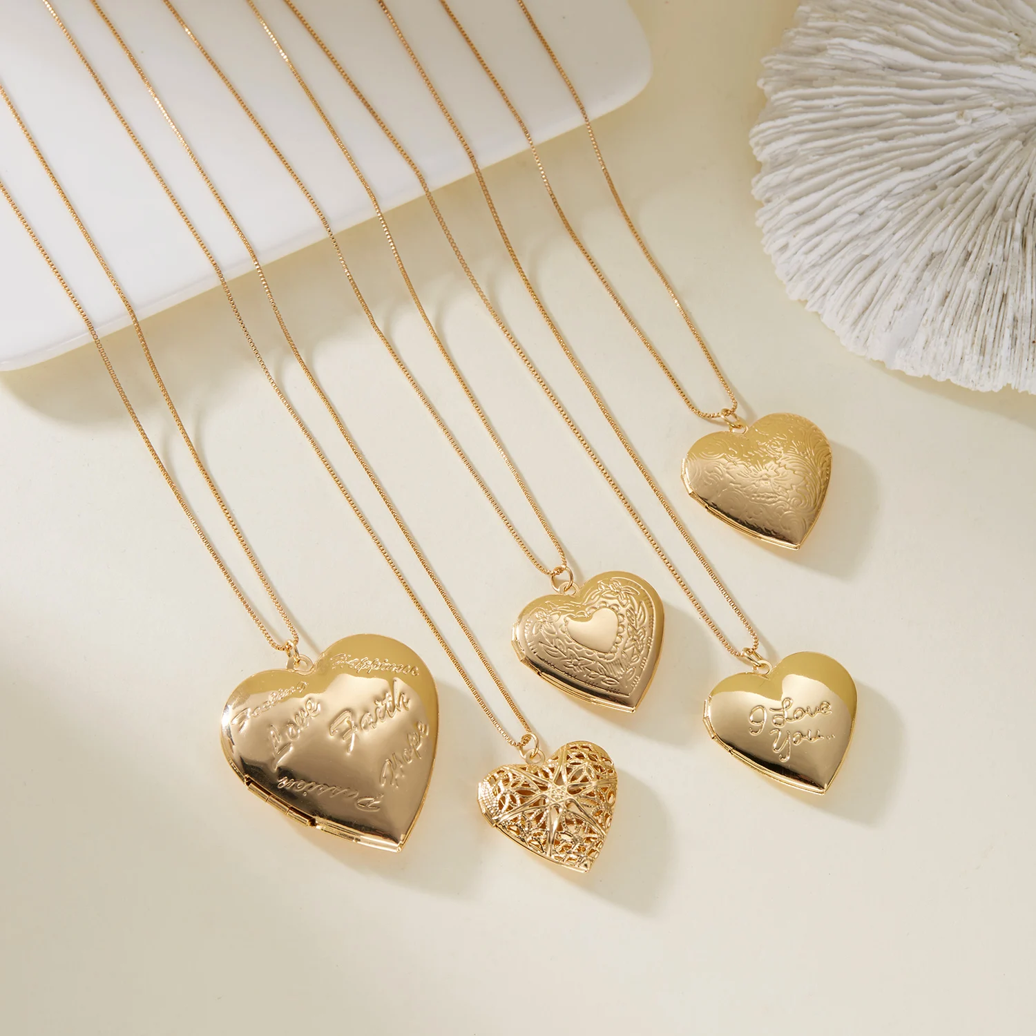 رومانسية القلب المنجد قلادة قلادة خمر الذهب اللون قابل للفتح إطار الصورة سحر قلادة للنساء الرجال زوجين مجوهرات هدايا