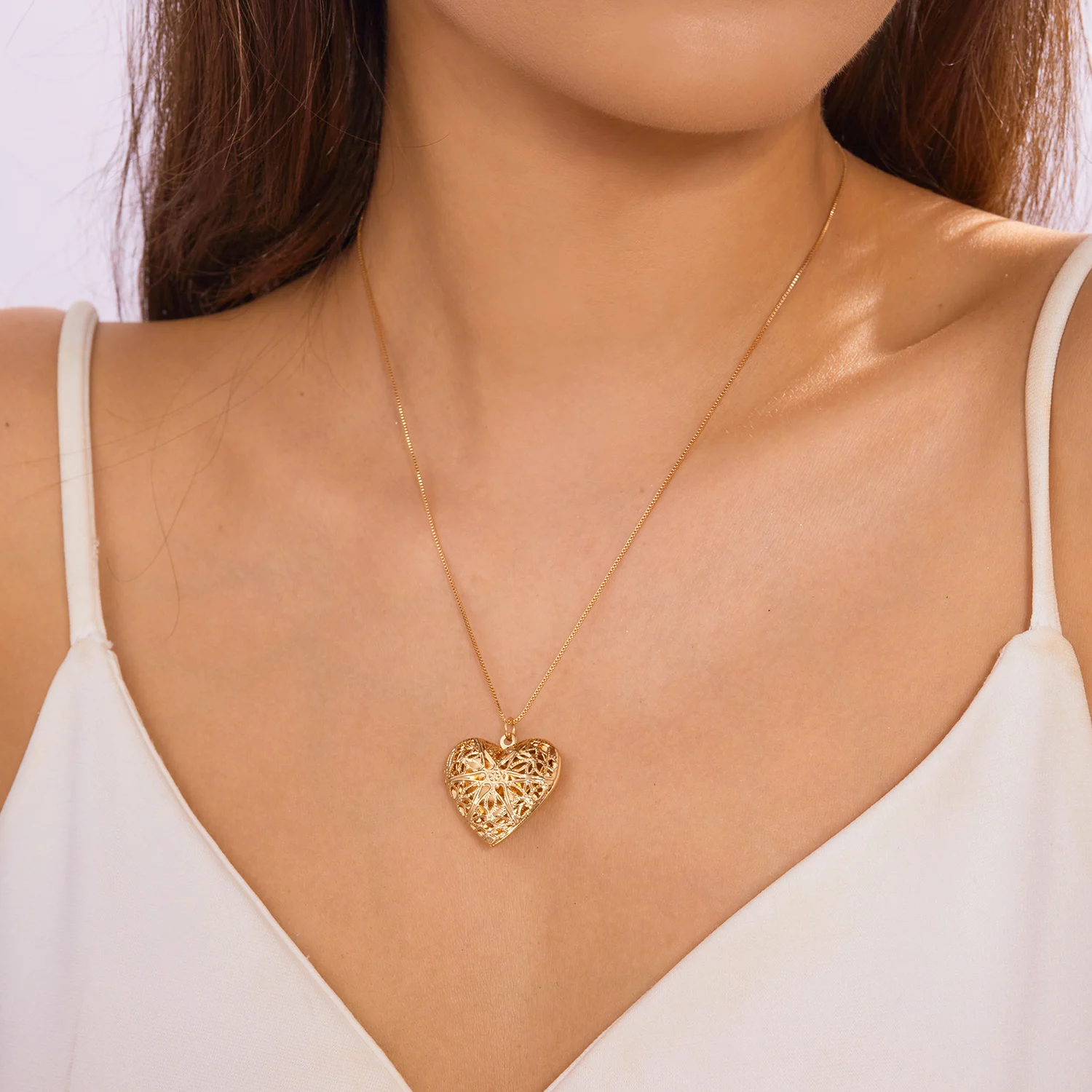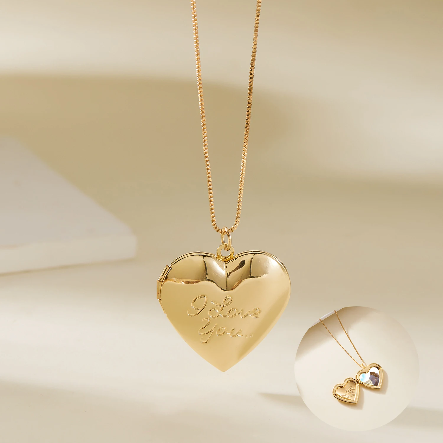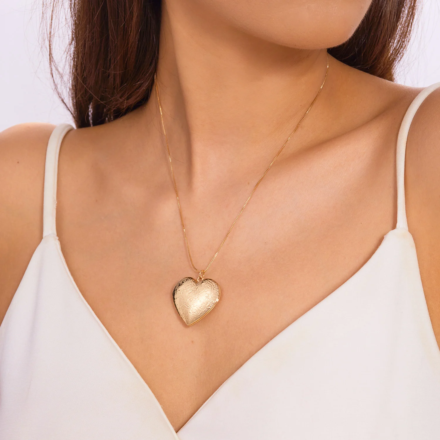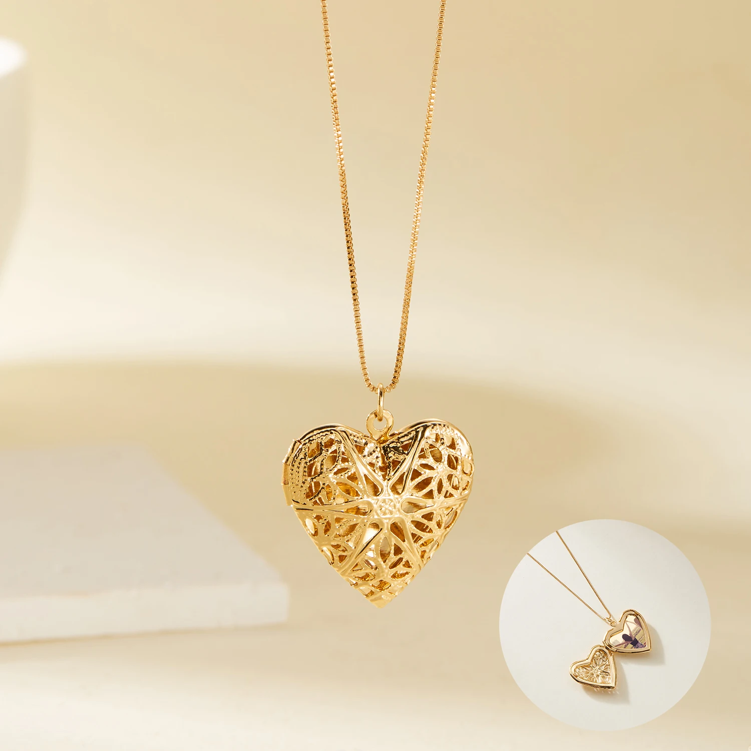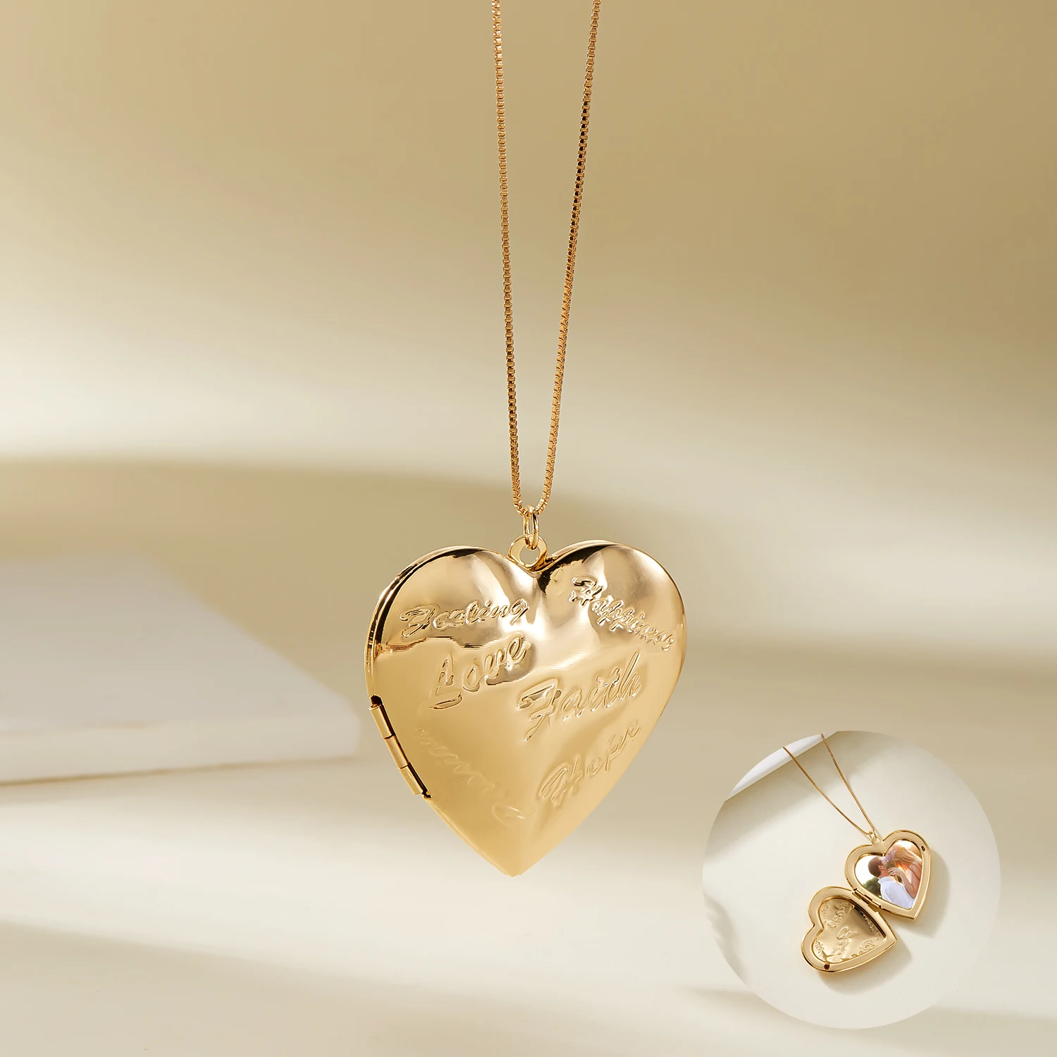 رومانسية القلب المنجد قلادة قلادة خمر الذهب اللون قابل للفتح إطار الصورة سحر قلادة للنساء الرجال زوجين مجوهرات هدايا