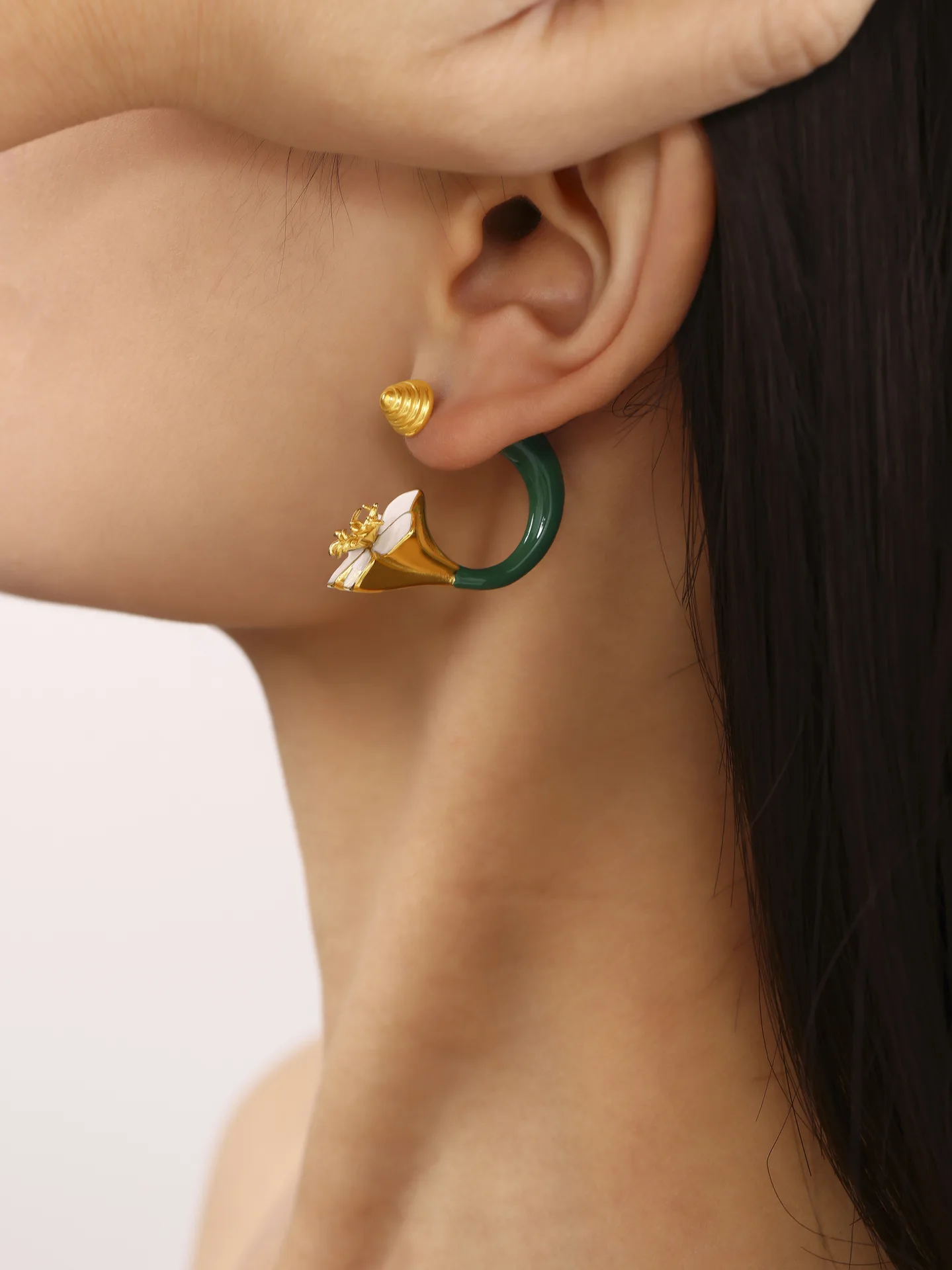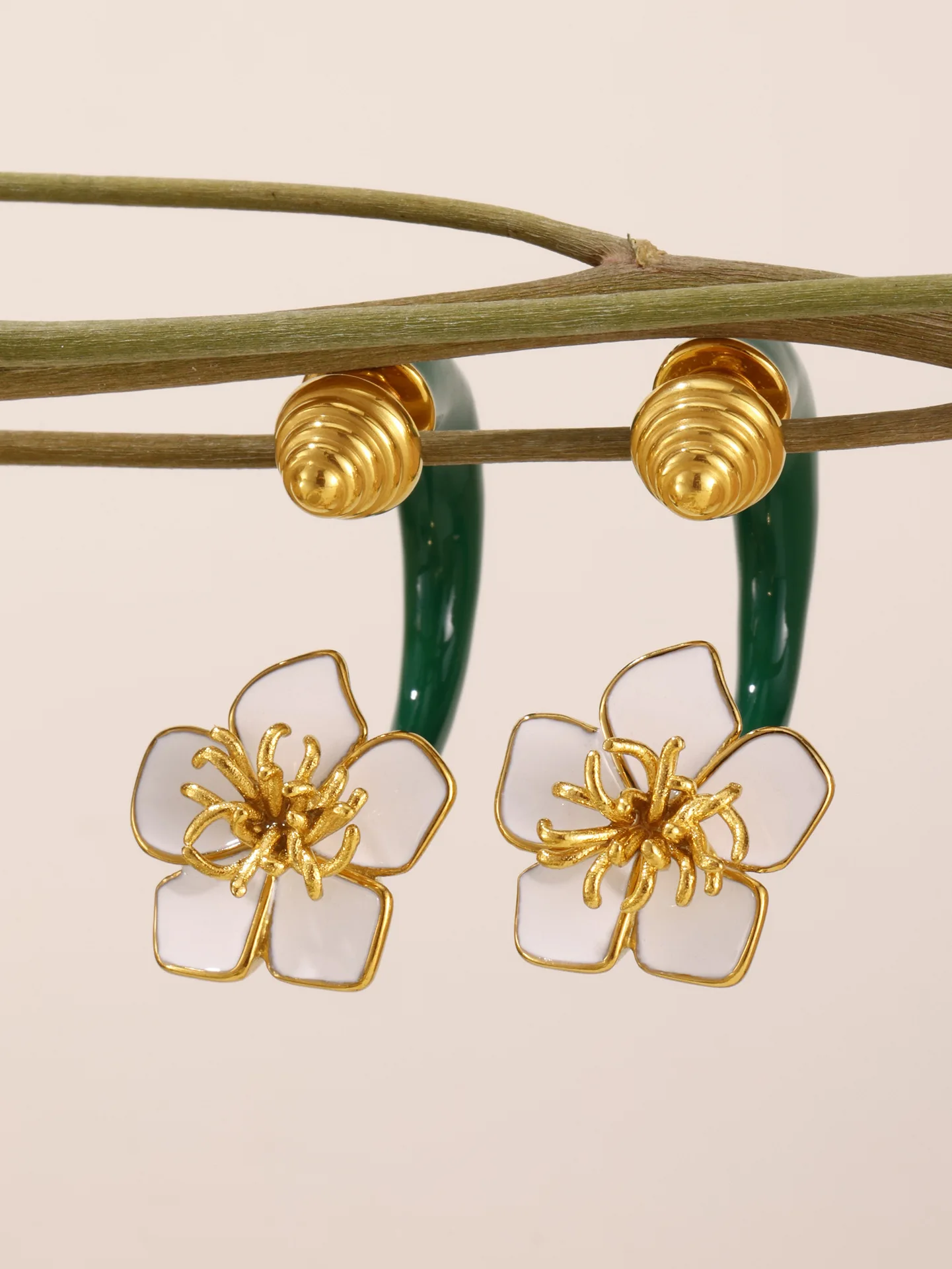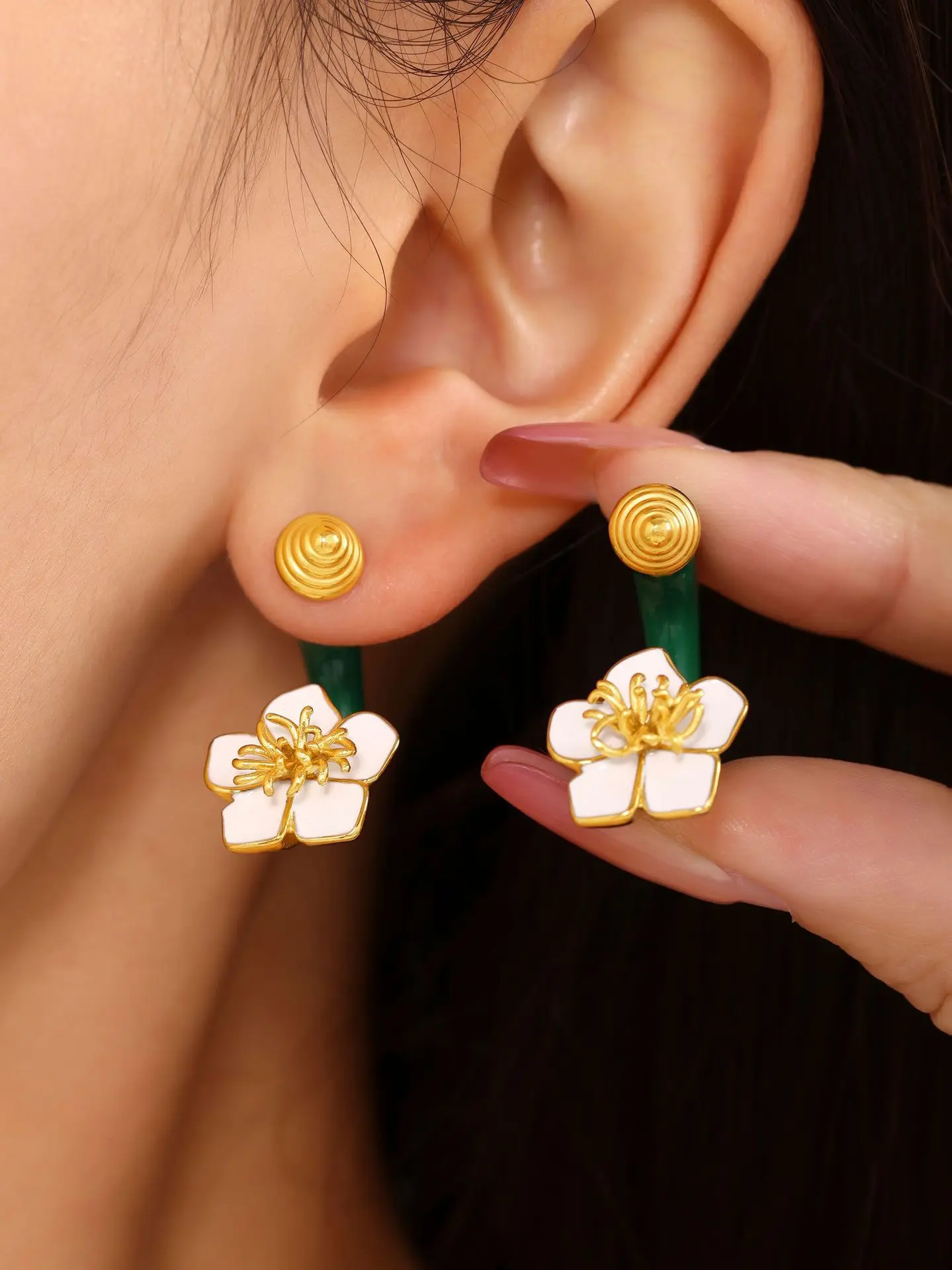 كاميليا فريدة من نوعها الفولاذ المقاوم للصدأ 18K أقراط مطلية بالذهب للنساء مقاوم للماء المينا الأذن مربط فاخر مجوهرات يومية هدية