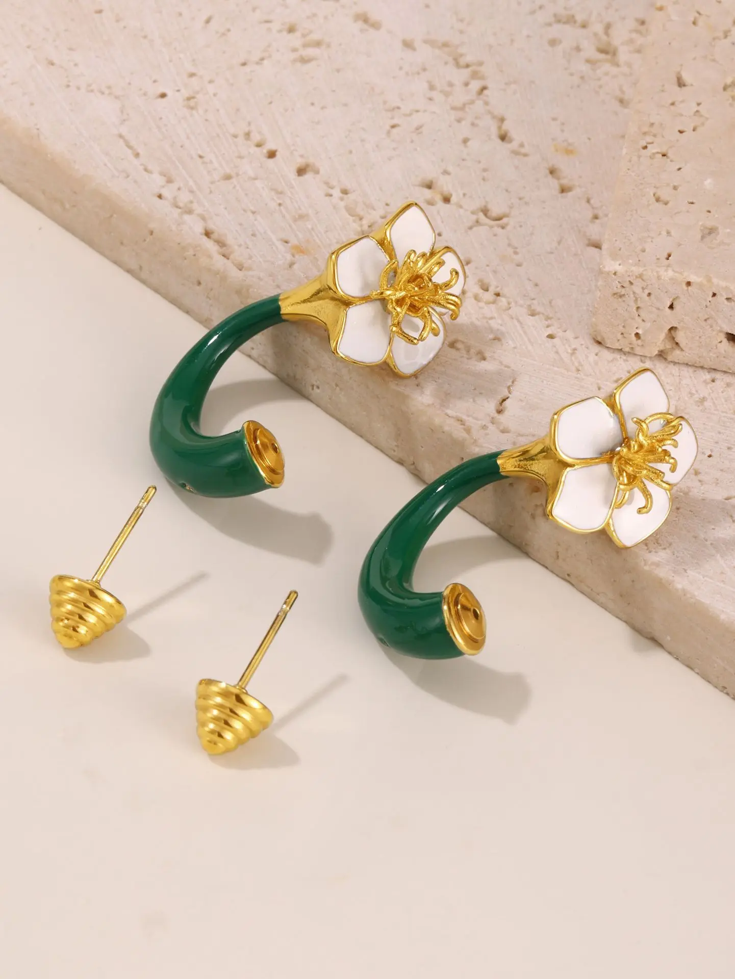 كاميليا فريدة من نوعها الفولاذ المقاوم للصدأ 18K أقراط مطلية بالذهب للنساء مقاوم للماء المينا الأذن مربط فاخر مجوهرات يومية هديةكاميليا فريدة من نوعها الفولاذ المقاوم للصدأ 18K أقراط مطلية بالذهب للنساء مقاوم للماء المينا الأذن مربط فاخر مجوهرات يومية هدية
