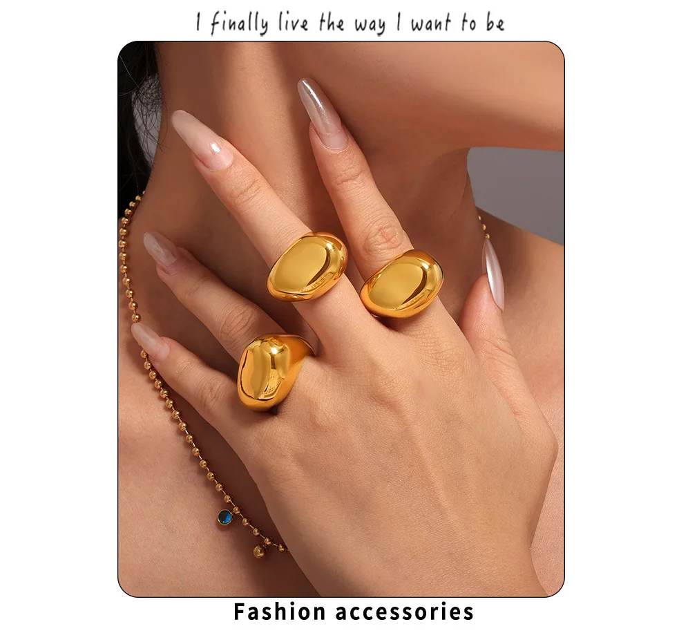 لامعة كبيرة الفولاذ المقاوم للصدأ خواتم للنساء 18K PVD مطلية بالذهب مقاوم للماء غير النظامية حلقة سحر المجوهرات الفاخرةلامعة كبيرة الفولاذ المقاوم للصدأ خواتم للنساء 18K PVD مطلية بالذهب مقاوم للماء غير النظامية حلقة سحر المجوهرات الفاخرة