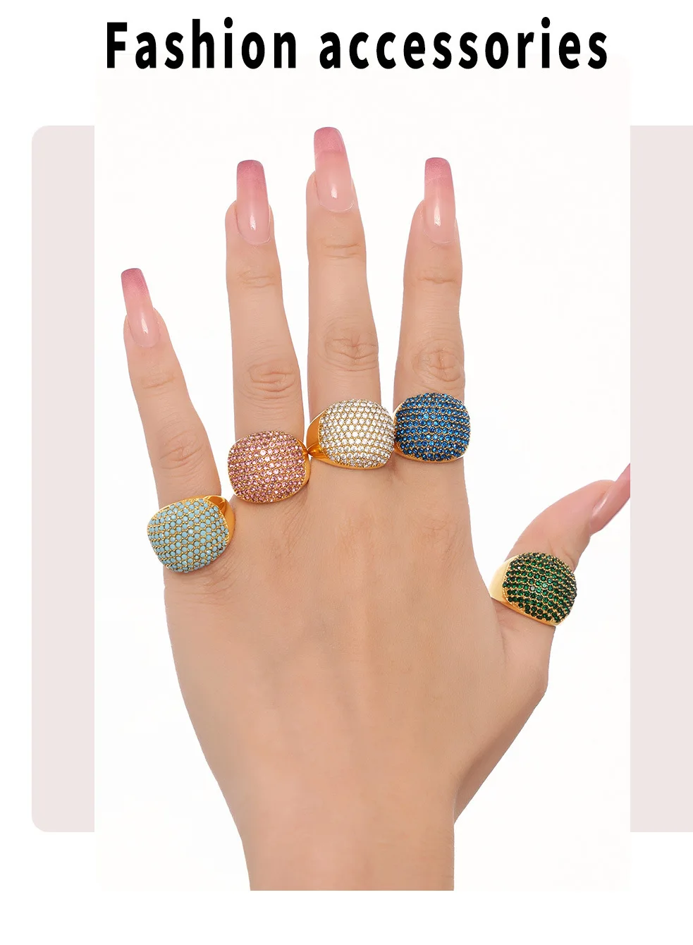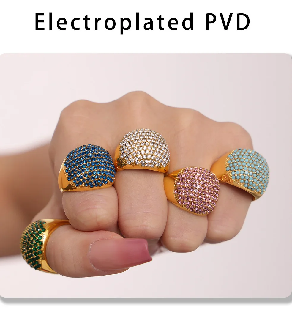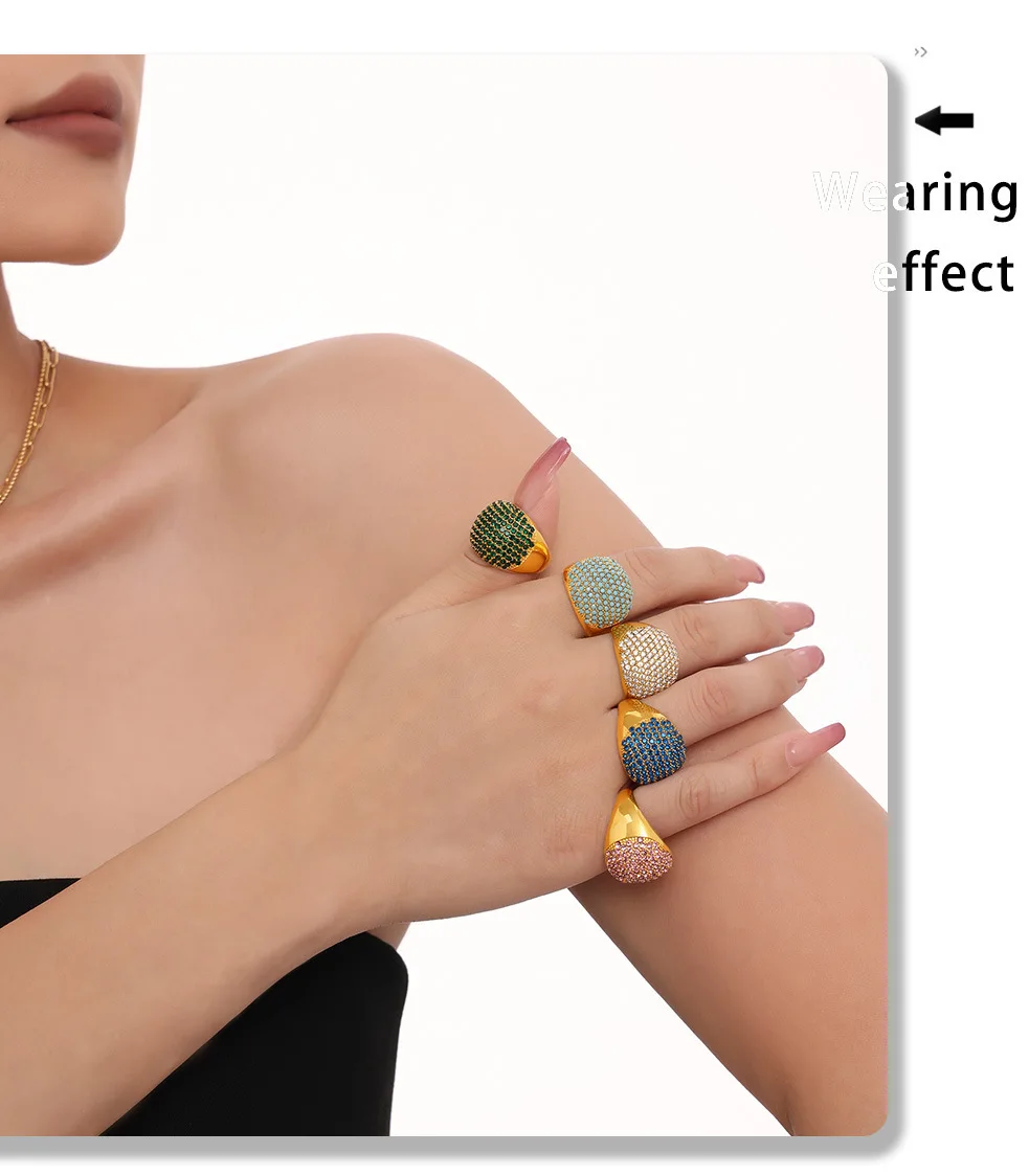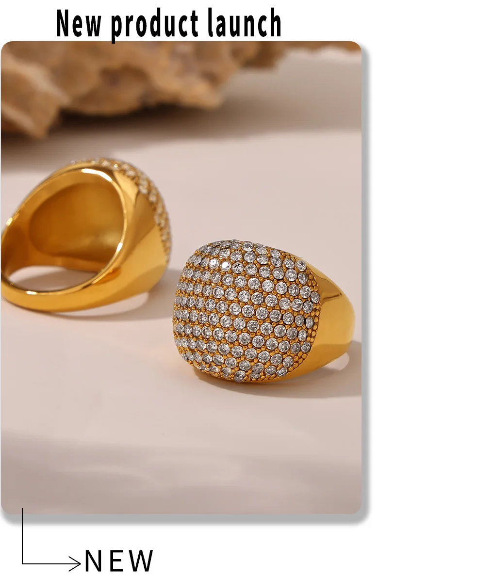 مبالغ فيها الزركون الفولاذ المقاوم للصدأ خواتم للنساء مطلية بالذهب الاتجاه مقاوم للماء جولة البنصر السبابة خاتم مجوهرات فاخرة هدية