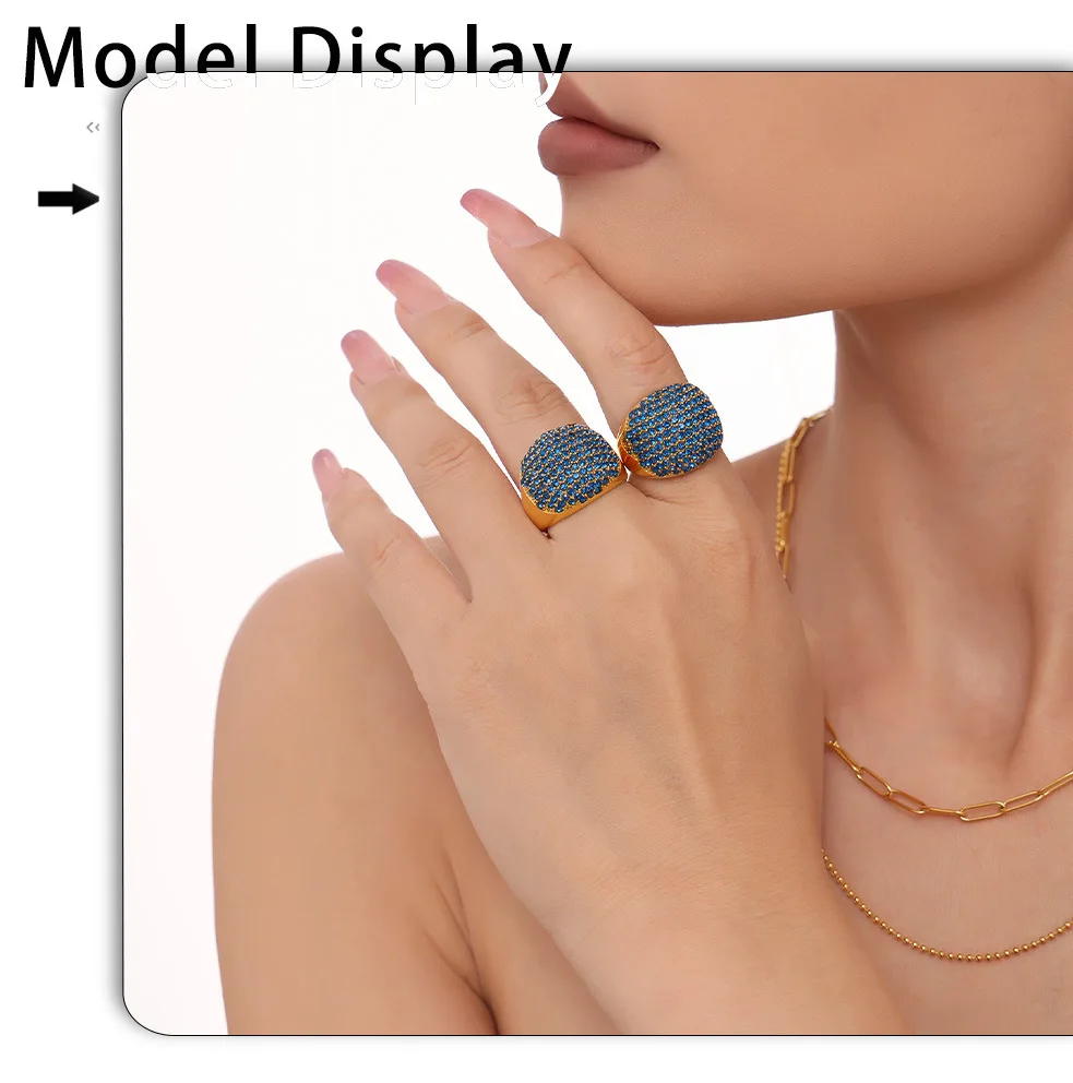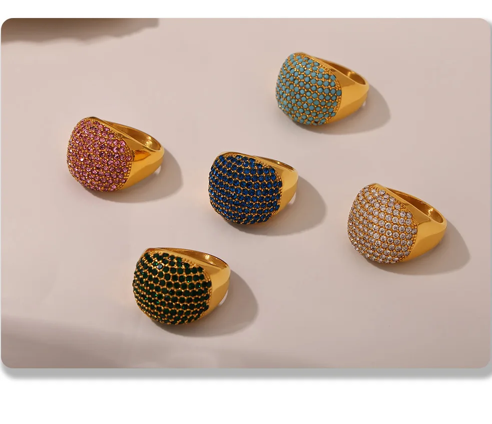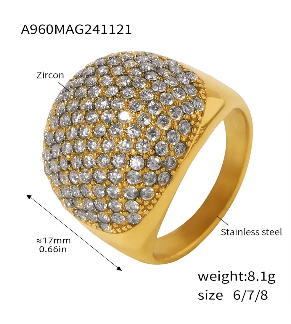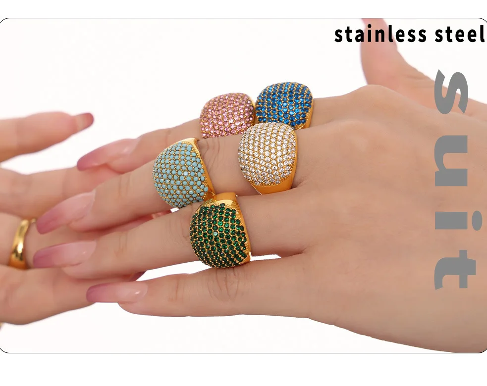 مبالغ فيها الزركون الفولاذ المقاوم للصدأ خواتم للنساء مطلية بالذهب الاتجاه مقاوم للماء جولة البنصر السبابة خاتم مجوهرات فاخرة هديةمبالغ فيها الزركون الفولاذ المقاوم للصدأ خواتم للنساء مطلية بالذهب الاتجاه مقاوم للماء جولة البنصر السبابة خاتم مجوهرات فاخرة هدية